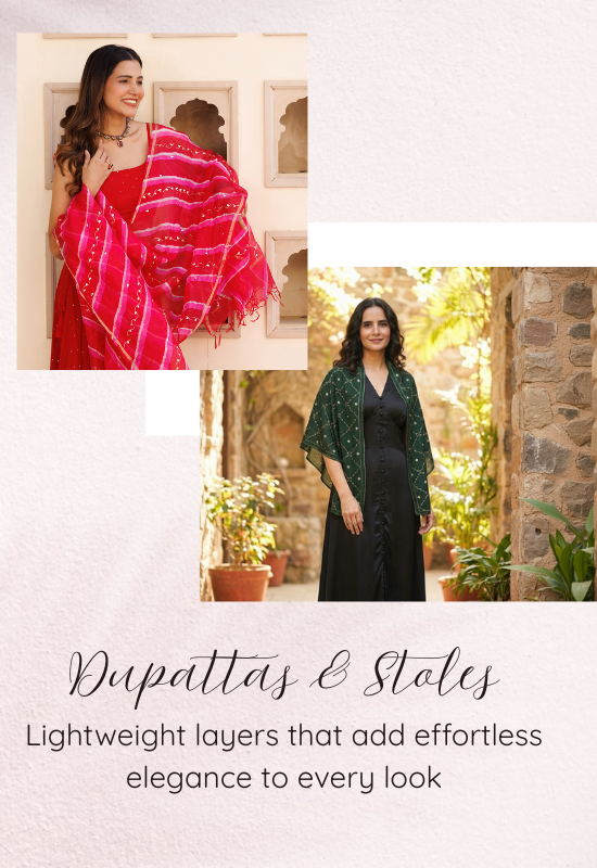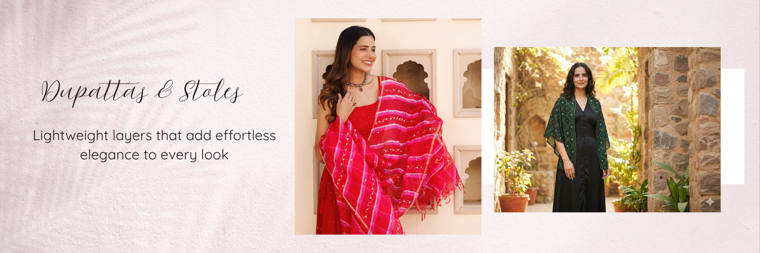 Dupattas/Stoles have always been a favorite item among women in traditional attire and Geroo Jaipur brings you, beautifully handcrafted dupattas/stoles.