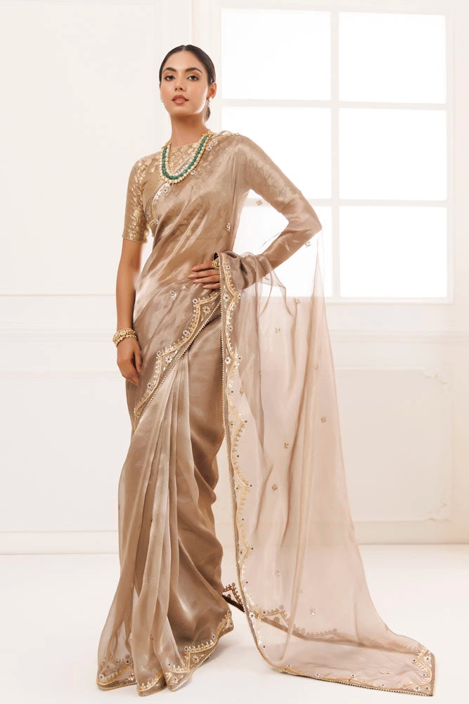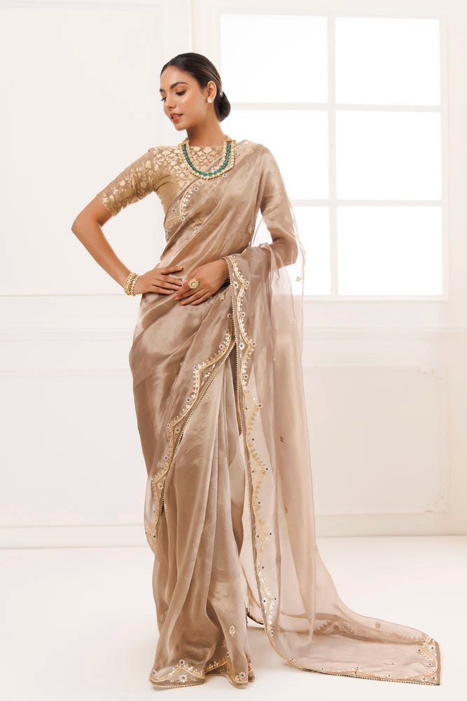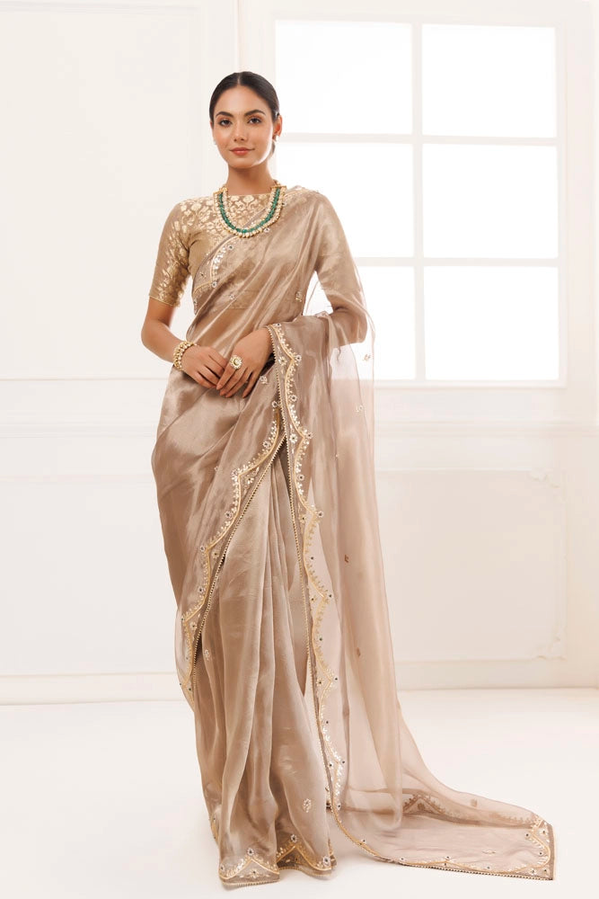 Metallic Golden Pure Tissue Handcrafted Gota Patti Saree