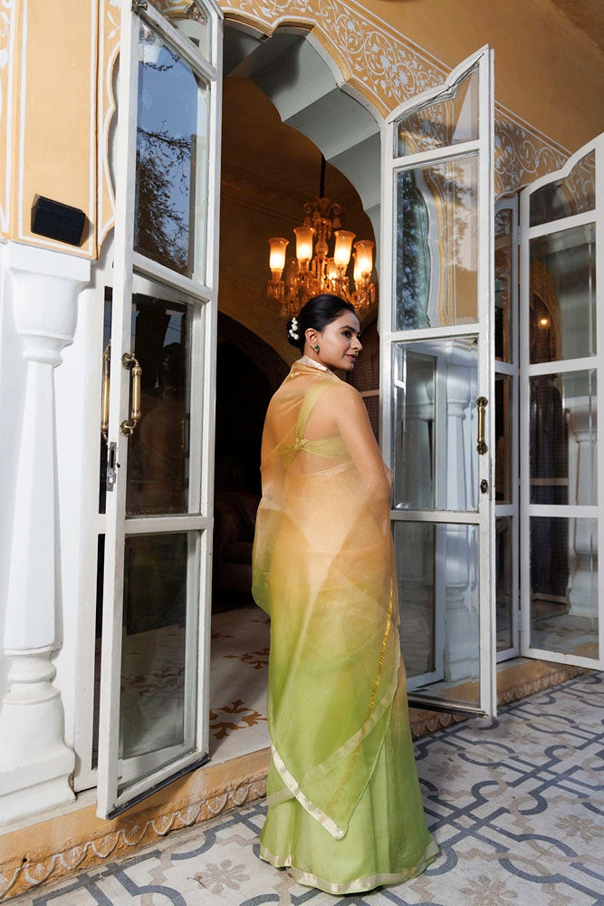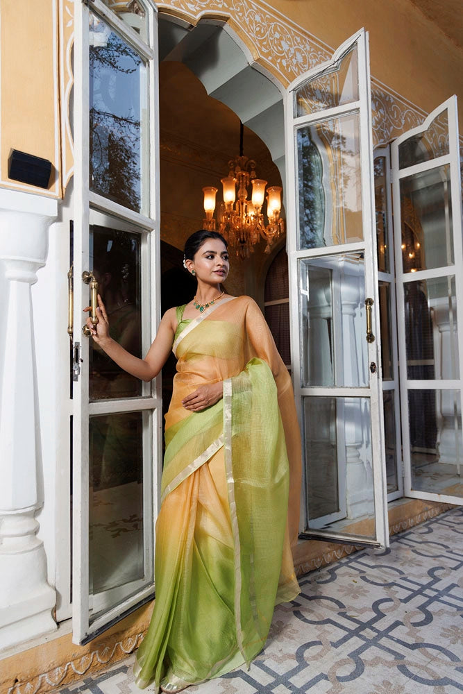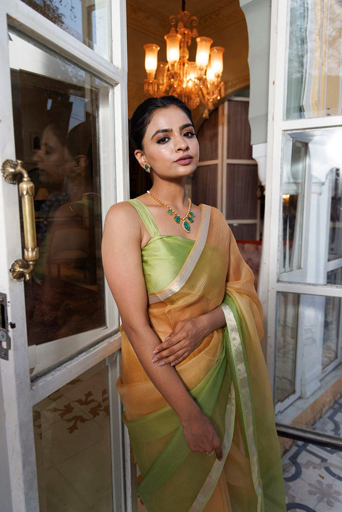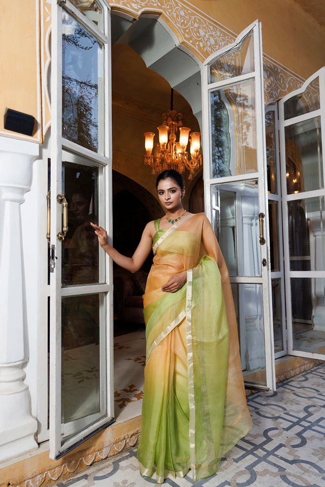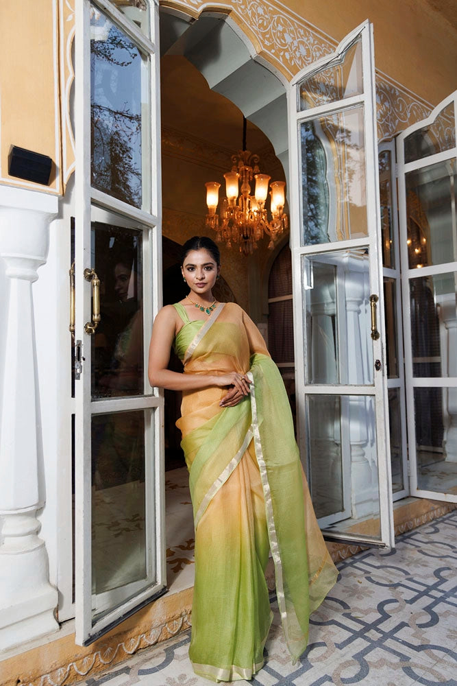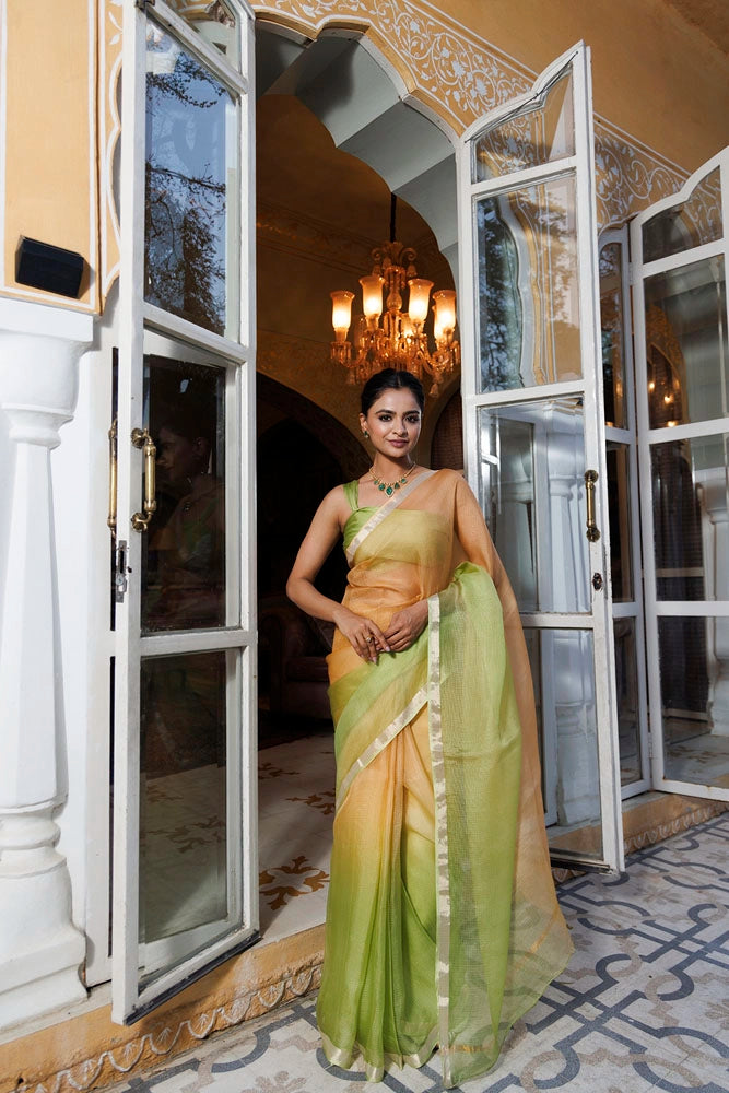 Green-Beige Pure Kota Silk Hand Dyed Saree