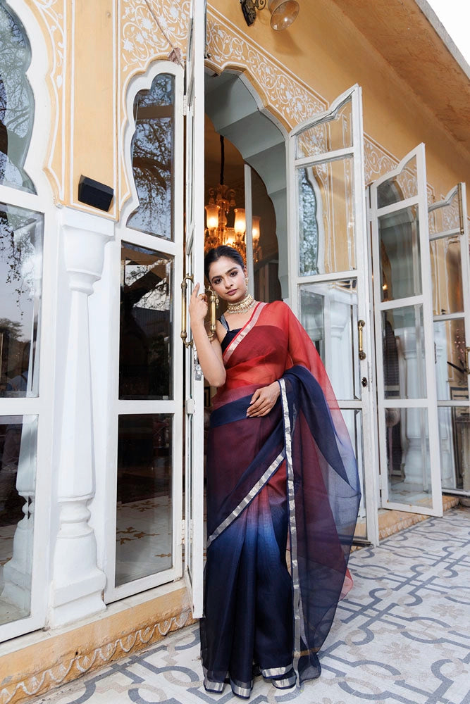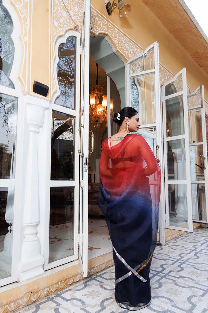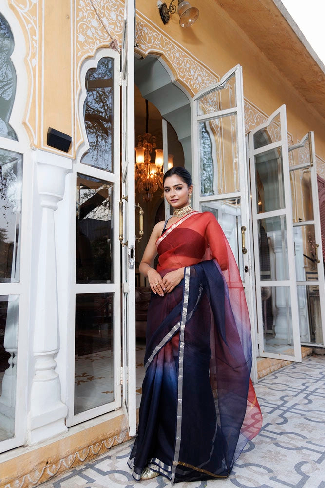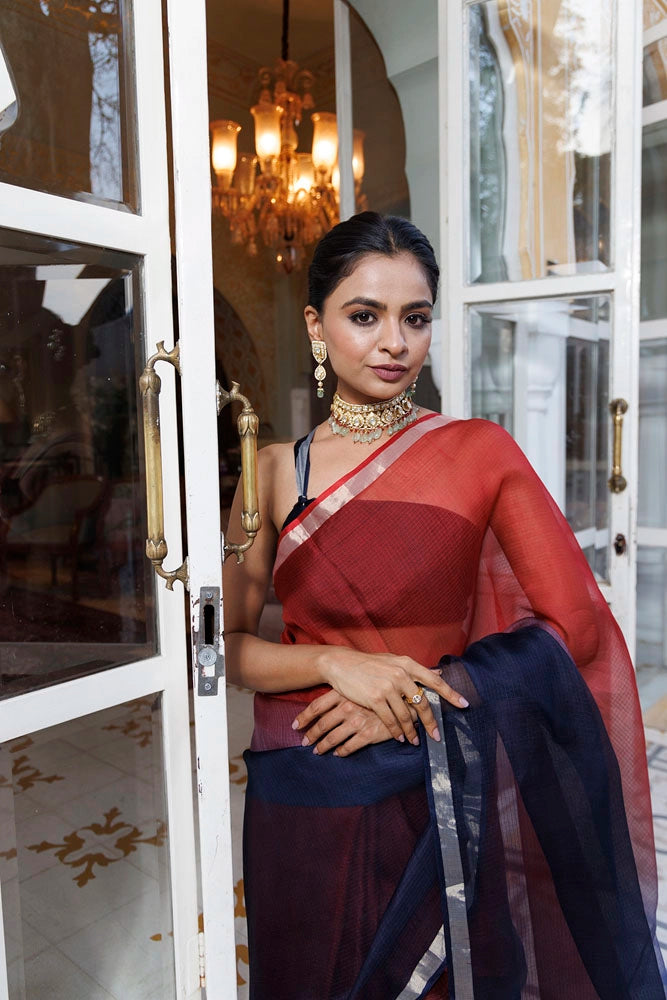 Maroon-Dark Blue Pure Kota Silk Hand Dyed Saree