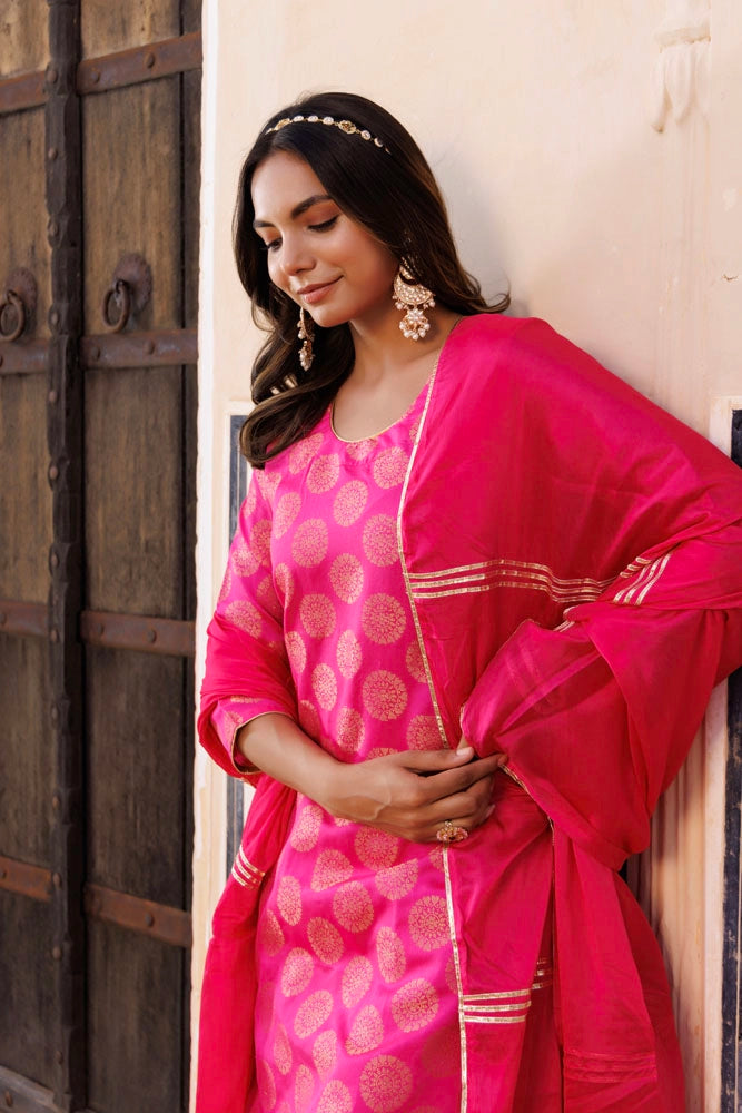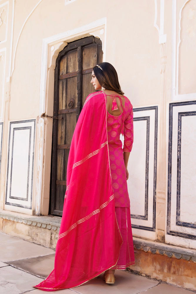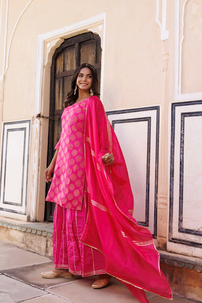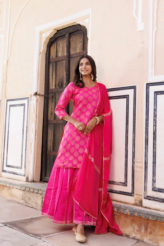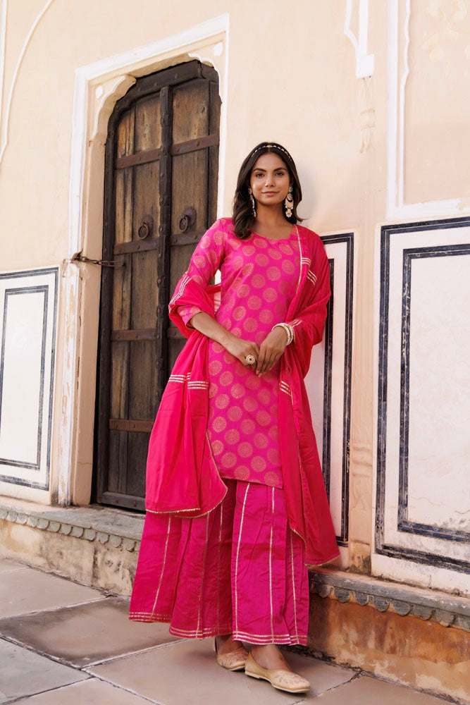 Pink Banarasi Silk Gota Hand Embellished Sharara Set