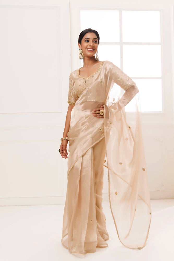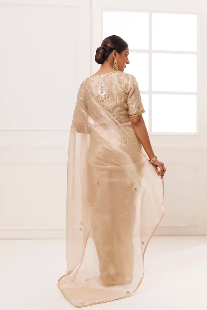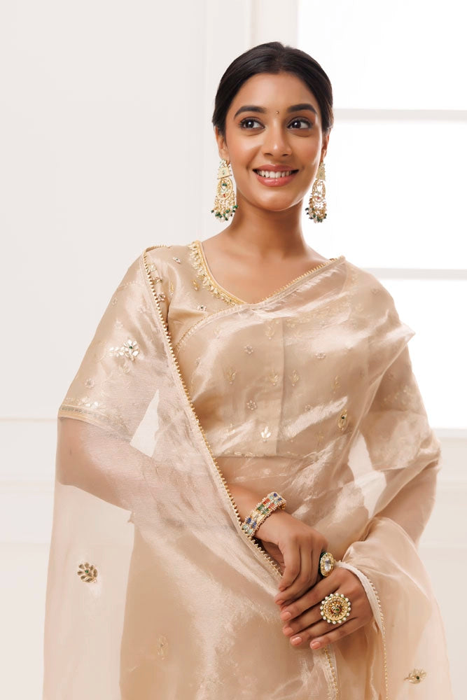 Golden Pure Tissue Handcrafted Gota Patti Saree