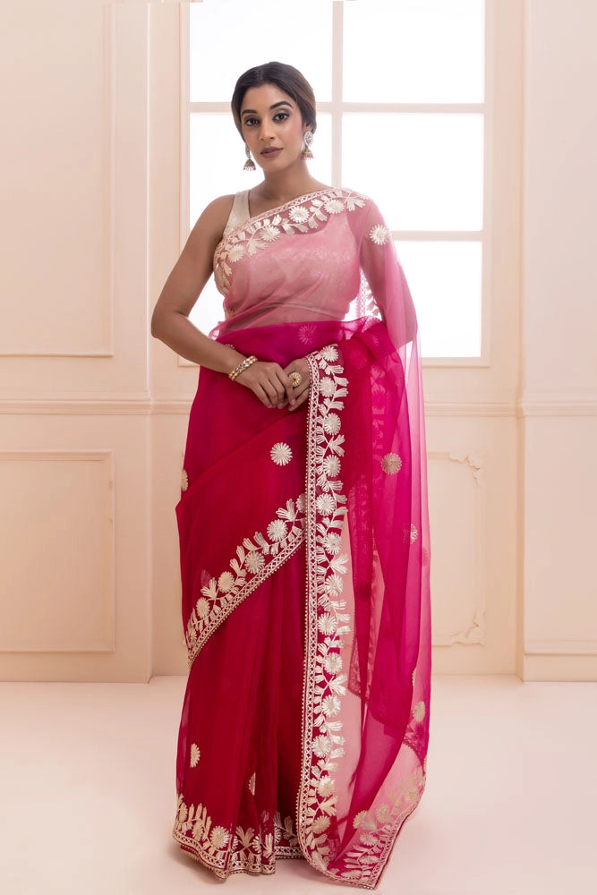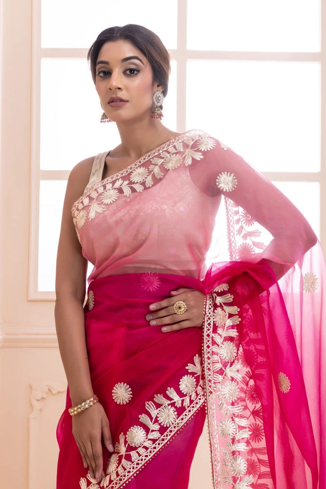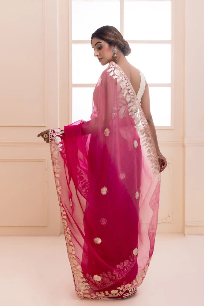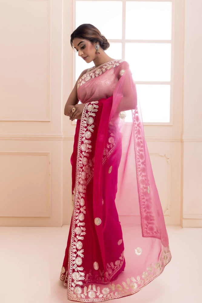 Pink Shaded Handcrafted Gota Patti Organza Saree