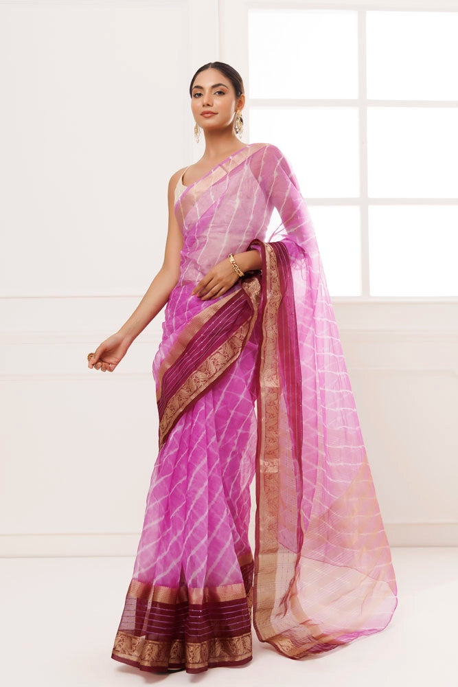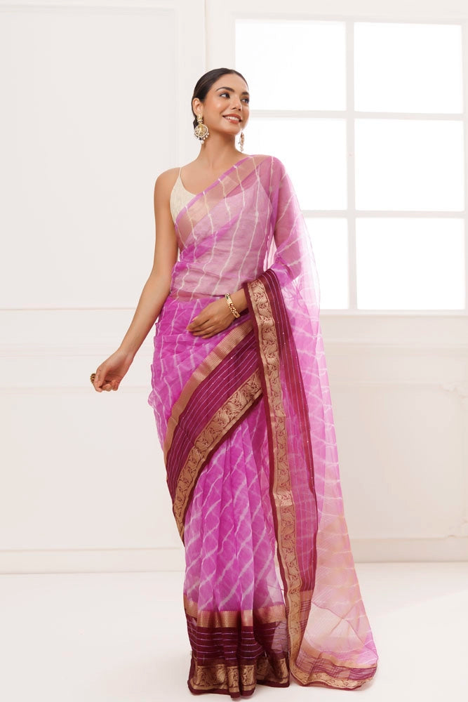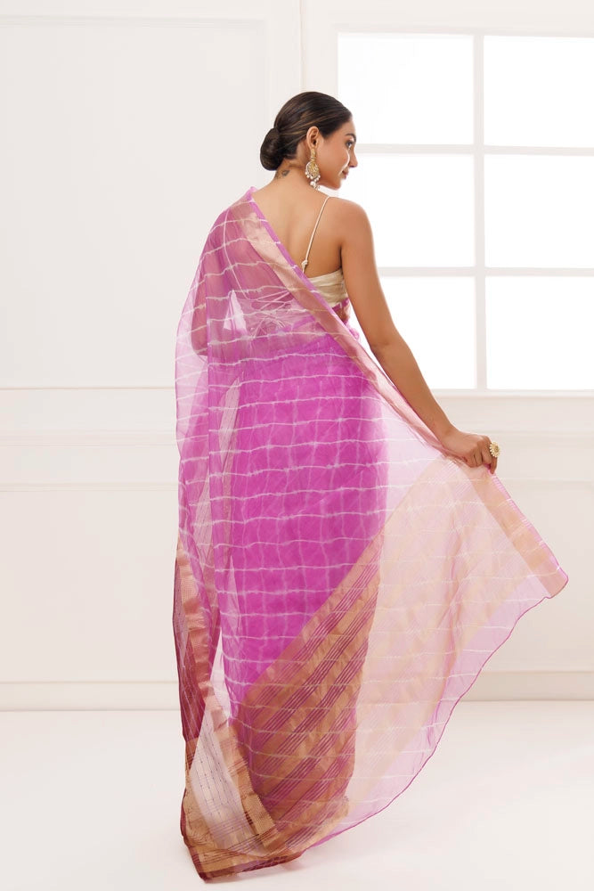 Purple Organza Zari Embellished Hand Dyed Leheriya Saree