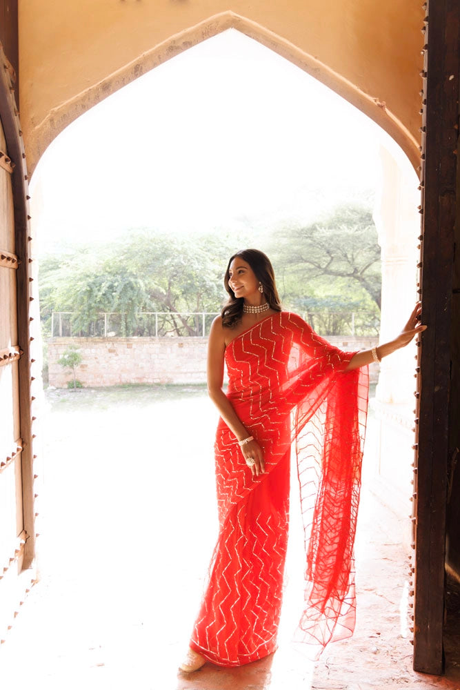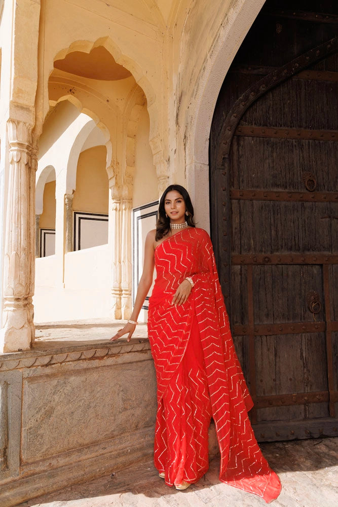Red Chiffon Gota Patti Saree – Handcrafted in Jaipur