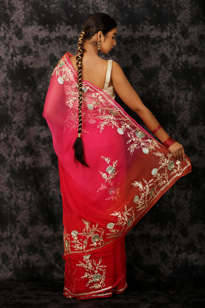 Red Hand Embroidered Gota Patti Chiffon Saree