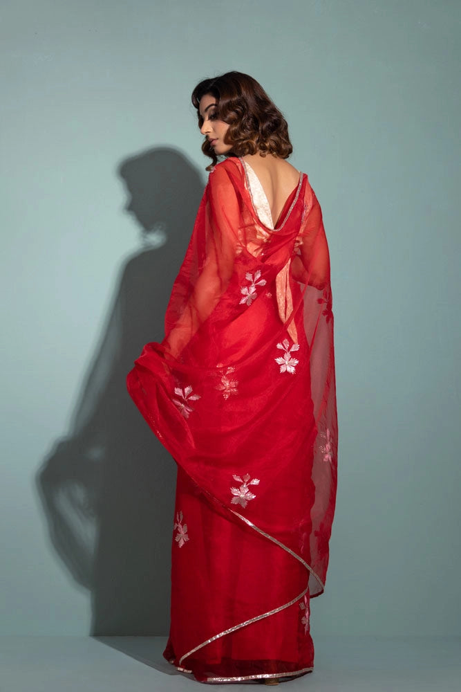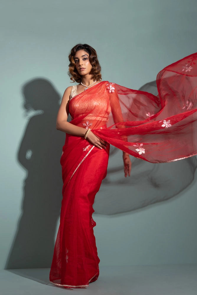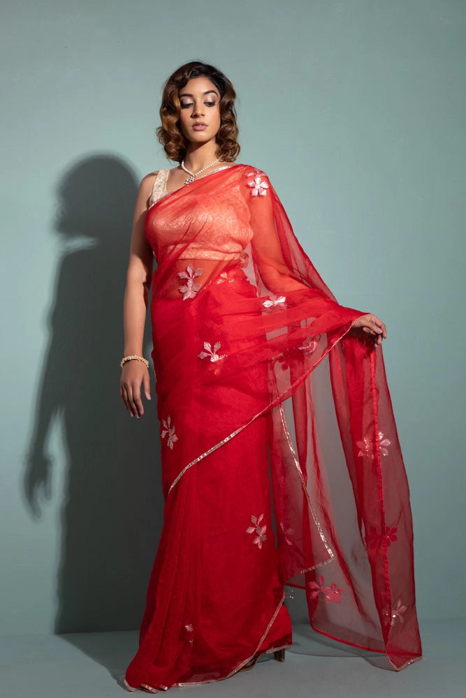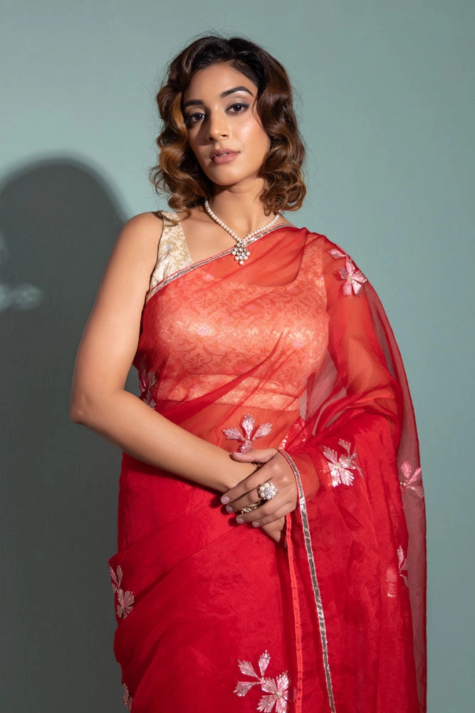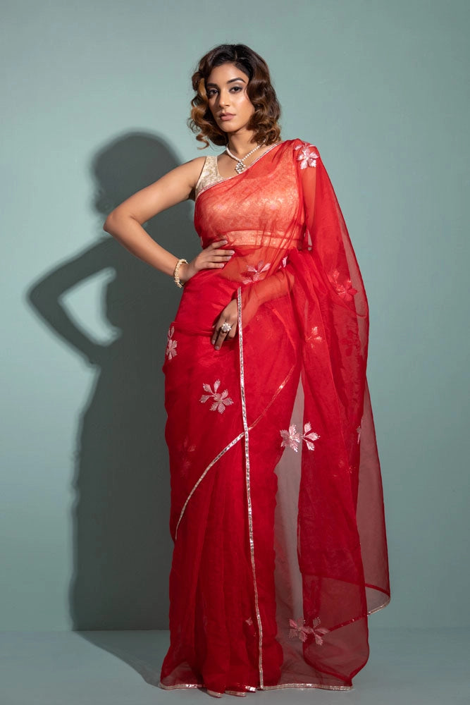 Red Handcrafted Gota Patti Organza Saree